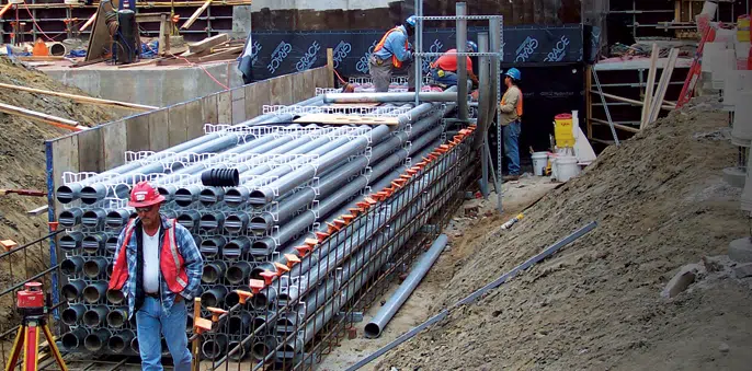 Construction of underground raceway systems to protect and organize electrical and control cabling for long-term durability and accessibility.
